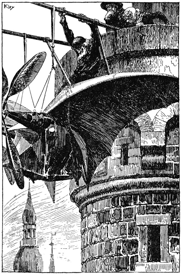 Das Gemurmel der Menge, die den Platz vor dem Dom erfüllte, war verstummt, und das tobende Schrillen der elektrischen Klingel brach ab. Der Wachmann war von der Turmtüre zurückgetreten und stand unter den übrigen, die mit verdrehten Hälsen zusahen, wie die Flugmaschine des Türmers über die Dächer Kreise zog.