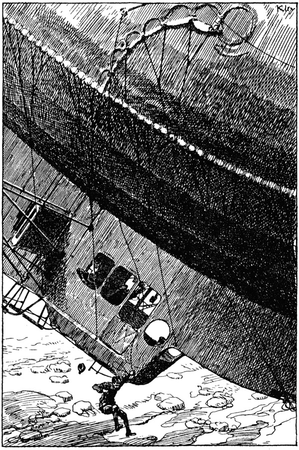 »Wir müssen schleunigst wassern,« entschied der Führer und ließ durch Merkli unter dem Gondelbug die dreieckige rote Landungsflagge hissen.