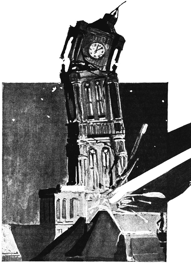 Das Berliner Rathaus stürzt, von Radiumstrahlen getroffen, zusammen.