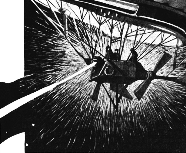 »In fünfzig Jahren«, sagte Leo Bon, »wird der Krieg zu den Unmöglichkeiten gehören. Ich habe mit Dr. Branly eine ganze Reihe von Experimenten gemacht, bei denen ich die Herzschen Wellen (die bekanntlich die Träger der drahtlosen Telegraphie sind) sowohl wie die Radiumemanationen verwandte, und diese Experimente haben uns darüber volle Gewißheit gebracht. Wir stellten diese Versuche an, um die Durchdringbarkeit verschiedener Körper zu prüfen und fanden, daß die Wellen beispielsweise fähig waren, durch mehr als drei dicke Mauern zu dringen, die Radiumstrahlen sie aber nicht nur durchdrangen, sondern völlig zerstörten. Ein Blättchen Staniol, nicht dicker als ein dünnes Zigarettenpapier, genügte allerdings, die Wellen aufzuhalten und die Emanationen unschädlich zu machen, dafür aber reichte wieder ein Krehl oder Ritz im Zinnpapier, der nicht größer war als [1/100] Millimeter, hin, um die Strahlen sofort wieder durch- und ihre unglaublich zerstörende Wirkung ausüben zu lassen. So gut es nun gelungen ist, die Herzschen Wellen, die das Bestreben haben, sich kreisförmig nach allen Richtungen hin auszubreiten, in eine bestimmte Richtung zu zwingen, ist diese Möglichkeit auch bei den Radiumstrahlen erreicht worden. Dadurch nun, daß wir auch polarisierte Wellen in die von uns gewünschte Richtung zu leiten vermögen, ist es uns auch ermöglicht, eine ganze Reihe paralleler Strahlen nach dem gewünschten Punkt zu entsenden, und treffen diese Strahlen nun auf irgend einen Gegenstand, z. B. ein Kriegsschiff, ein Pulvermagazin usw., so würde sofort alles, was daran von Metall ist, sich elektrisch laden, furchtbare Entladungen würden dann stattfinden, und das ganze Netzwerk von Drähten, an welchen unsere Schiffe so reich sind, würde nur so sprühen von elektrischen Funken, die Geschosse aber würden explodieren und die Munitionskammern in die Luft fliegen. Die in parallelen Wellen entsendeten Radiationen würden die Mauern unserer Arsenale durchdringen, die Wälle und Kasematten unserer Festungen, die Mauern unserer Pulvermagazine. Alles würde auffliegen oder in sich zusammenstürzen, nichts würde gegen den direkten Ansturm all der Millionen von Partikelchen standhalten, die gegen jedes einzelne Atom der Gesamtmaterie jenes Gegenstandes gerichtet wären, gegen den die Strahlen gelenkt sind. Alle diese Versuche wurden im kleinen angestellt, und es ist, wie gesagt, nur eine Frage der Zeit, sie auch ins große zu übertragen. Vorläufig fehlen uns nur die nötigen Radiummengen und die notwendigen Apparate. Denn um diese Radiationen zu reflektieren oder in eine bestimmte Richtung zu zwingen (Radiationen, deren Länge zwischen 300 Metern und 1500 schwankt), müßten wir parabolische Spiegel von etwa 8000 Meter Höhe haben oder es müßten uns Kondensatoren von einer Kraftentwicklung zur Verfügung stehen, die wir bisher noch nicht herzustellen vermögen.