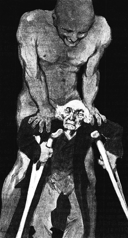 Das Leben, das den Menschen drückt und alt und kraftlos und gebrechlich macht.