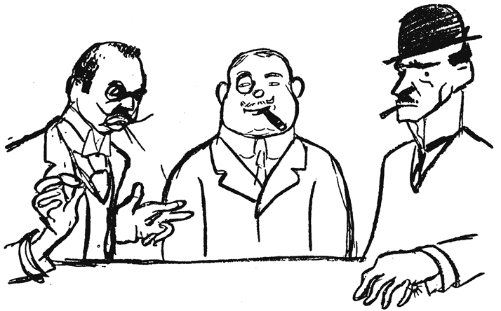 Der Stammtisch bestand aus folgenden Mitgliedern, die gleichzeitig die Teilhaber der neuen Gesellschaft mit beschränkter Haftung wurden: Als geistiges Oberhaupt Fritz Krohn, zu dem sie alle großes Vertrauen hatten, denn es ging von ihm die Sage durch das Kaffeehaus, daß jeder Mensch, der fünf Minuten lang mit ihm spräche, gezwungen wäre, seine Unterschrift auf einen Inseratenschein zu setzen. Ferner war da der Maler Neudorf, der die künstlerische Ausgestaltung des neuen Blattes übernehmen sollte. Ferner war da Robert Batzke, ein junger Mann mit schwarzem Haar, einer in die Stirn fallenden Locke und einem bunten Oberhemd, das vorsichtigerweise in einem ganz tiefen Dunkelblau gehalten war, so daß man nicht genau feststellen konnte, ob er es erst heute frisch angezogen hatte. Robert Batzke war zwar erst neunzehn Jahre alt, blickte aber bereits auf eine reiche journalistische Tätigkeit zurück, die im Abfassen von Lokalnotizen und Unglücksfällen reichliche Nahrung gefunden hatte. Ferner war am Stammtisch Herr Paul Gustav Weber, Besitzer eines Automobils, Lebemann und Freund einer sehr schönen Frau. Das Automobil hatte er auf Wechsel gekauft und die zweite Rate bereits prolongieren lassen. Die schöne Frau war zwar nicht auf gleiche Weise in seinen Besitz geraten, aber Herr Weber duldete es großmütig, daß seine Freundin über einige Tage der Woche anderweitig verfügte, wegen seines Automobils und wegen seines doppelten Vornamens ernannte Fritz Krohn Herrn Paul Gustav Weber zum Verleger des neuen Blattes. Ferner war am Stammtisch Herr Franz von Söröny, oder wie er sich lieber nannte Söröny Ferencz aus Budapest, Magyar Baczi. Herr von Söröny war sehr tipptopp, trug ganz enge Ärmel und stets Lackstiefel. Er spuckte beim Sprechen und hatte alle zwei Minuten einen neuen genialen Gedanken. Trotz dieses Überflusses an Genialität gelang es ihm selten, die dreißig Pfennige für seine Schale Haut aufzubringen, und er erlaubte daher seinem Freund Paul Gustav Weber die Zeche zu bezahlen, wofür er sich bei ihm revanchierte, indem er sich mit ihm öffentlich in seinem Automobil zeigte. Herr Baron von Söröny wies nämlich öfters auf seinen uralten Adel hin und beschränkte sich darauf von diesem Verdienst vorläufig zu leben. Fritz Krohn hatte Söröny dazu bestimmt, die repräsentative Stellung des neuen Verlages zu übernehmen.