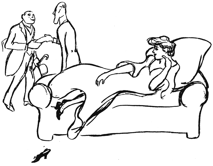 Eines Mittags aber machte Fritz Krohn die Bekanntschaft des reichen Grafen. Fritz saß in Lottes schönem Salon auf einem schwellenden Fauteuil und sie lag auf einem eben so schwellenden Diwan in malerischer Pose ihm gegenüber. Es klingelte zweimal. Das Leben des Großstädters steht im Zeichen der Klingel. Im Wachen und im Schlafen schreckt ihn immer irgend eine Klingel, wenn die Elektrizität auch sonst von großem Vorteil für die Menschheit geworden ist, auf die Klingelei hätte sie verzichten sollen und ihre Kraft lieber für etwas anderes aufsparen sollen, wenn nun der Mensch plötzlich durch ein zweifaches Klingeln in eine unerwartete und peinliche Situation gerät, so kann man es ihm nicht verdenken, wenn er in diesem Augenblick nicht sehr gut auf die Erfindung der Elektrizität zu sprechen ist. Und das war Fritz, als es an Lottes Korridortür zweimal kurz hintereinander klingelte und sie von dem schwellenden Diwan verwirrt aufsprang: »Das ist der Graf.« Fritz sagte nur: »Donnerwetter«, aber im selben Augenblick holte er seinen Hut und seinen Stock aus dem Nebenzimmer und fand seine Geistesgegenwart wieder Dann rief er Lotten zu: »Du stellst mich einfach vor und nur per Sie.«