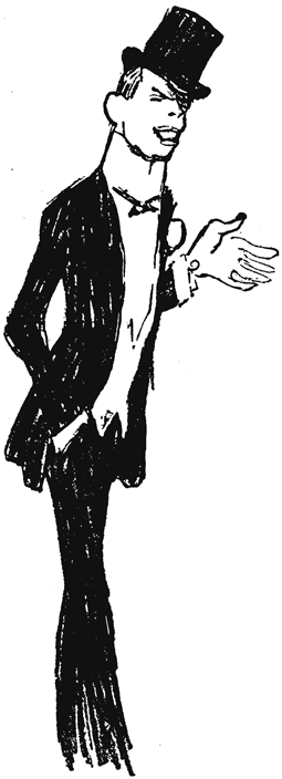 Mia Pippa sang die Lieder des reichen Grafen. Fritz Krohn leitete den Musentempel und deklamierte eigene Gedichte. Außerdem ergötzte der Maler Neudorf das Publikum durch komische Niggersongs, die er zu einer Guitarre begleitete. Das Personal der Truppe bestand noch aus einer jungen Dame, die wegen Überproduktion an schauspielerischem Talent seit langem ohne Engagement war, und aus Herrn Maximilian Blödinsky, Mitglied eines der hervorragendsten Kunstinstitute der Reichshauptstadt, der abends nach elf Uhr sich dazu herabließ, dem Publikum ein paar Couplets zu versetzen. Er erholte sich sozusagen in Fritzens Musentempel von den schwierigen Pflichten, die ihm seine Dienerrollen am Theater auferlegten.