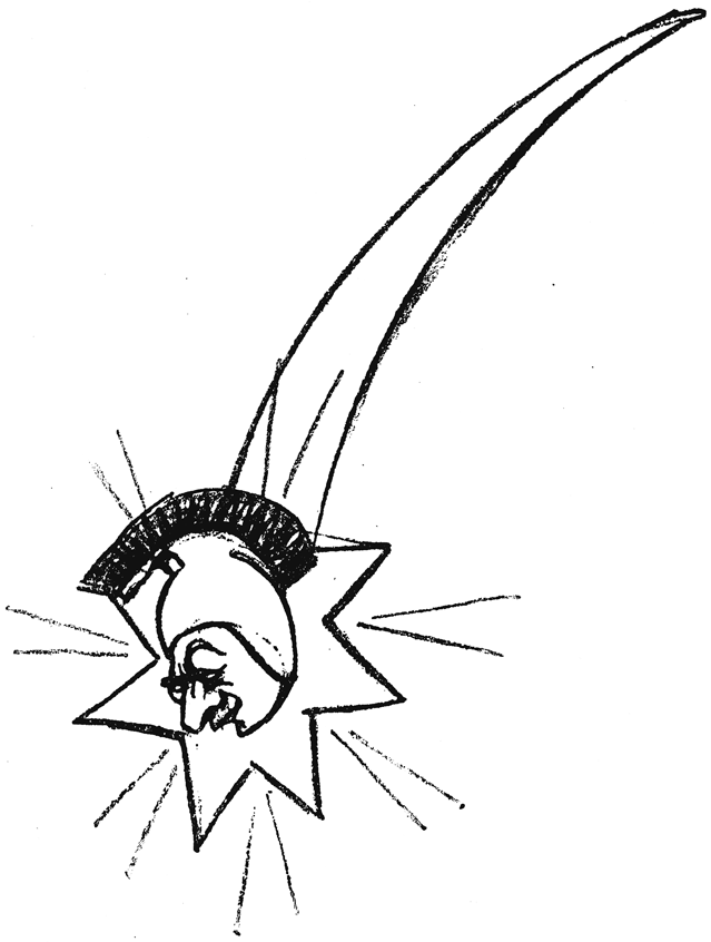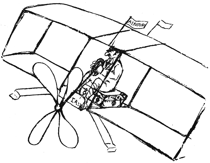 Die Herren der Presse, die während der ganzen Fahrt telephoniert hatten, waren schon zum Umfallen müde, und nur der Sekt und Berge von Kaviarbrötchen hatten es vermocht, daß ihre Kräfte nicht dahinschwanden. Fritz aber, dem die Aufregungen und die großen Ehren eine übernatürliche Energie gegeben, stand aufrecht und fest vorn am Steuer und das treue Monokel blitzte siegessicher in den Weltenraum hinab.