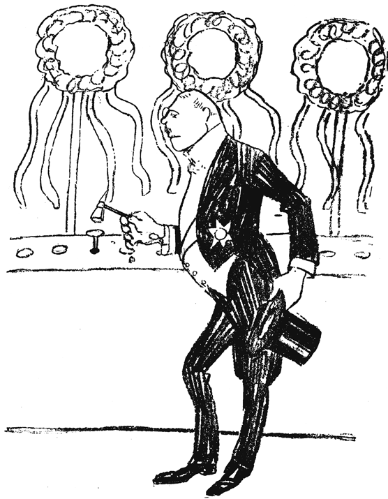 Oben auf dem Perron drängten sich die Deputationen: Kriegervereine, Studentenschaft, Universität; alle eingetragenen zivilen Vereinigungen hatten ihre Vertreter gesandt. Der Hof war vertreten und die Bürgermeister und Stadtväter erwiesen dem großen Erfinder mit dem blankgebügelten Zylinder in der Hand die tiefste Reverenz. Man überbrachte Fritz die Ernennung zum wirklichen Geheimrat mit dem Titel Exzellenz und den Orden Pour le mérite, sowie den Kronenorden vierter Klasse. Söröny bekam den Roten Adlerorden und Genendelsohn das Allgemeine Ehrenzeichen, da man ihn fälschlicherweise als Portier auf die eingereichte Liste geschrieben hatte. Ein Kranz weißgekleideter Ehrenjungfrauen knixte in einem fort und ein Major a. D. kommandierte: »Beugt das Knie – eins – zwei – eins – zwei!«