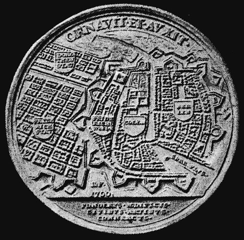 Die fünf Städte: Berlin, Cölln, Friedrichswerder, Dorotheenstadt und Friedrichstadt. Medaille aus dem Jahre 1700