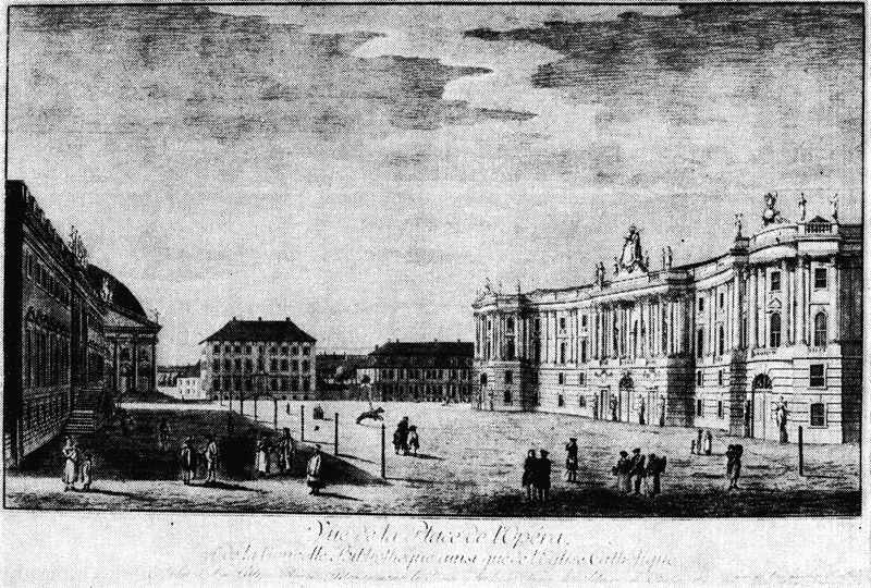 Man darf es kaum »deutsche Kunst zu Ehren bringen« nennen, daß Friedrich II. einen für ganz andere räumliche Verhältnisse und in einer ganz anderen Zeit entworfenen, barock geschweiften Bau beziehungslos in die Ecke eines klassizistisch straffen Platzes stellte. Die Schauseite des alten Wiener Vorbildes trat in der Mitte konkav zurück. Dieses konkave Zurücktreten hatte in Wien einen künstlerischen Sinn, der bei Friedrichs II. Berliner Nachahmung fehlte und mißverstanden war. Die konkave Form des Wiener Palastes fing wie eine große Nische die Bewegung der gegenüber einmündenden Straße. Der Entwurf paßte sinnreich auf den Michaeler Platz in Wien, für den er entworfen war. Aber für die Ecke des Berliner Opernplatzes, für den er nicht entworfen war, paßte er nicht. Der Bau ist auch zu kurz für die Baustelle, die er füllen soll, und bei der Aufstellung ist nicht einmal die einfachste Achsenbeziehung zum gegenüberliegenden Opernhaus gewahrt. Und selbst wenn sie gewahrt wäre, würde doch die großartigere Barockgebärde des Wiener Hofburgentwurfes nicht in die Nähe des niedrigeren Opernhauses und der Hedwigskirche passen.