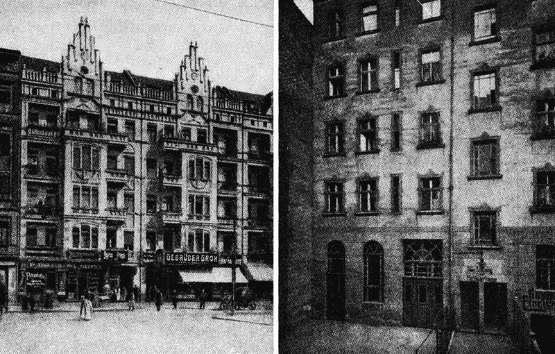 Eines der vielen hoffnungslosen westlichen Wohnviertel der Wilhelminischen und Haberland-Zeit, die in freiem Felde eng verbaut wurden, als stünden sie in einer Festung. Links »Renaissance«, im Vordergrund rechts neumodischer »Barock«