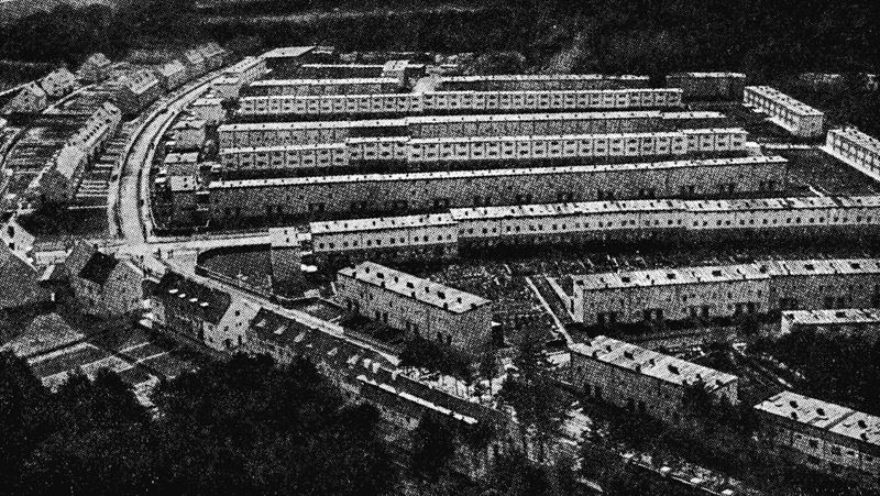 Siedlung der »Gehag« (Flachdachhäuser rechts) und der »Gagfah« (Steildachhäuser links) in Zehlendorf, 1925-28
