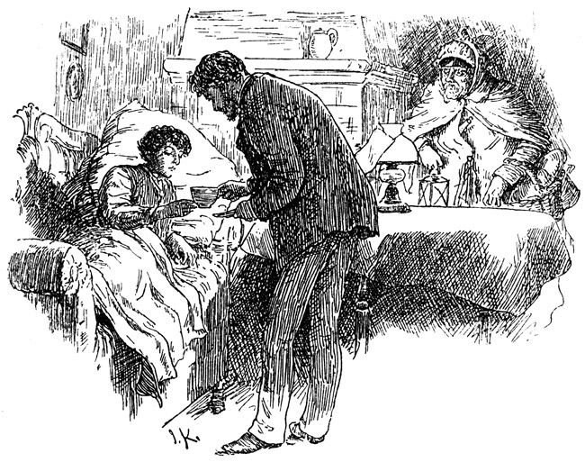 Der Gegenstand aller dieser Umsicht und Fürsorge schien sich jedoch vorläufig noch energisch gegen die Krankenrolle zu sträuben. Es war ein blutjunges Menschenkind, das den Kopf unaufhörlich zwischen den weißen Kissen des auf dem Sofa improvisierten Lagers hin und her warf; die wärmende Decke war zum Teil auf den Fußboden herabgeglitten und der ungeduldige Patient schob eben die gefüllte Theetasse grollend weit von sich, als die beiden Männer eintraten.