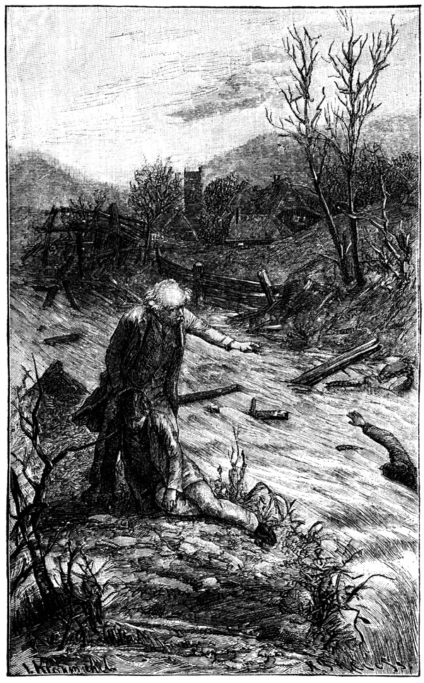 Auf dem Neuenfelder Kirchturm schlug es neun. Die zwei Wandernden waren über vier Stunden umhergeirrt und näherten sich der Jochbrücke – der Student war ermattet zum Umsinken … Da tauchte plötzlich am jenseitigen Ufer Sievert auf. Er hob die Arme wie abwehrend und rief mit lauter Stimme hinüber; aber das Toben und Brausen des nahen Wehres verschlang die Laute. Während der Hüttenmeister stehen blieb und aufmerksam dem erneuten Zuruf lauschte, betrat der Student ungeduldig die Brücke und schritt vorwärts.