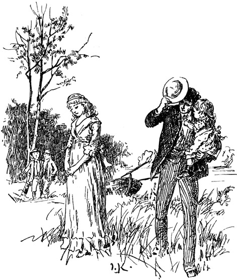Er nahm das durchnäßte Kind auf den Arm, lüftete den Hut und ging, während der Hund freudeheulend an ihm in die Höhe sprang.