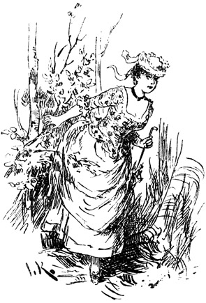 Die schöne Frau hatte eine Morgentoilette gemacht, die im Boulogner Hölzchen weit eher am Platz gewesen sein würde, als hier unter den ehrlichen deutschen Eichen und Buchen, zwischen deren einsamen Stämmen höchstens die verdutzten Augen eines beerensuchenden Kindes erschienen … Die Dame sah aus wie eine sechzehnjährige Schäferin à la Watteau in dem hochgeschürzten Rock aus milchweißem, weich niederfallendem Stoff, den ein himbeerfarbener Streifen umsäumte. Tief in die Stirn gedrückt lag ein helles Strohhütchen auf dem blauschwarzen Haar, das nicht, wie ehemals, in prachtvollen Ringeln auf die Brust fiel – Pariser Zofenhände hatten diese wuchtigen Strähne am Hinterkopf zu jenem abscheulichen Monstrum aufgenestelt, das die Welt »Chignon« nennt … Trotz dieser entstellenden Haartracht war es doch ein verführerisch schönes Weib, das leichten Fußes durch die taufrischen Gebüsche schritt.