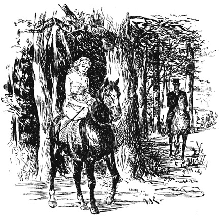 »War ich zu ungestüm?« fragte er sanfter, zog aber den Zügel noch mehr gegen sich, so daß die Pferde Seite an Seite hielten. Seltsam – Miß Sarah, die leicht ungebärdig unter fremder Hand wurde, mußte ihren Herrn und Meister erkennen; sie stand mit zitternden Beinen, sonst aber wie eine Mauer, und senkte fügsam den Kopf.