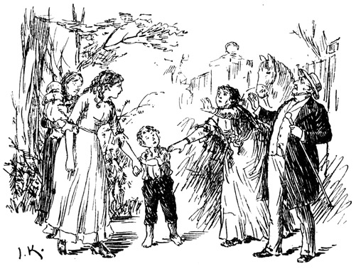 Eine Kinderstimme wurde hinter den Sprechenden laut. Die Taglöhnerfrau hatte sich beim Erblicken der Gouvernante sofort hinter das nächste Boskett geflüchtet; sie mochte viel Mühe gehabt haben, unterdes die Kinder zu beschwichtigen, damit sie die »böse, böse gnädige Frau« nicht bemerke. In diesem Augenblick aber war ihr doch ein kleiner Knabe entwischt. Er stand breitspurig im Weg und versuchte mit einem kräftigen »Hott!« Miß Sarah aus der Fassung zu bringen.