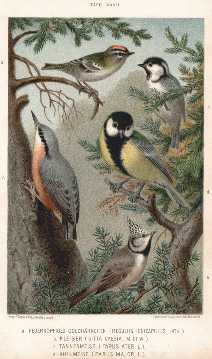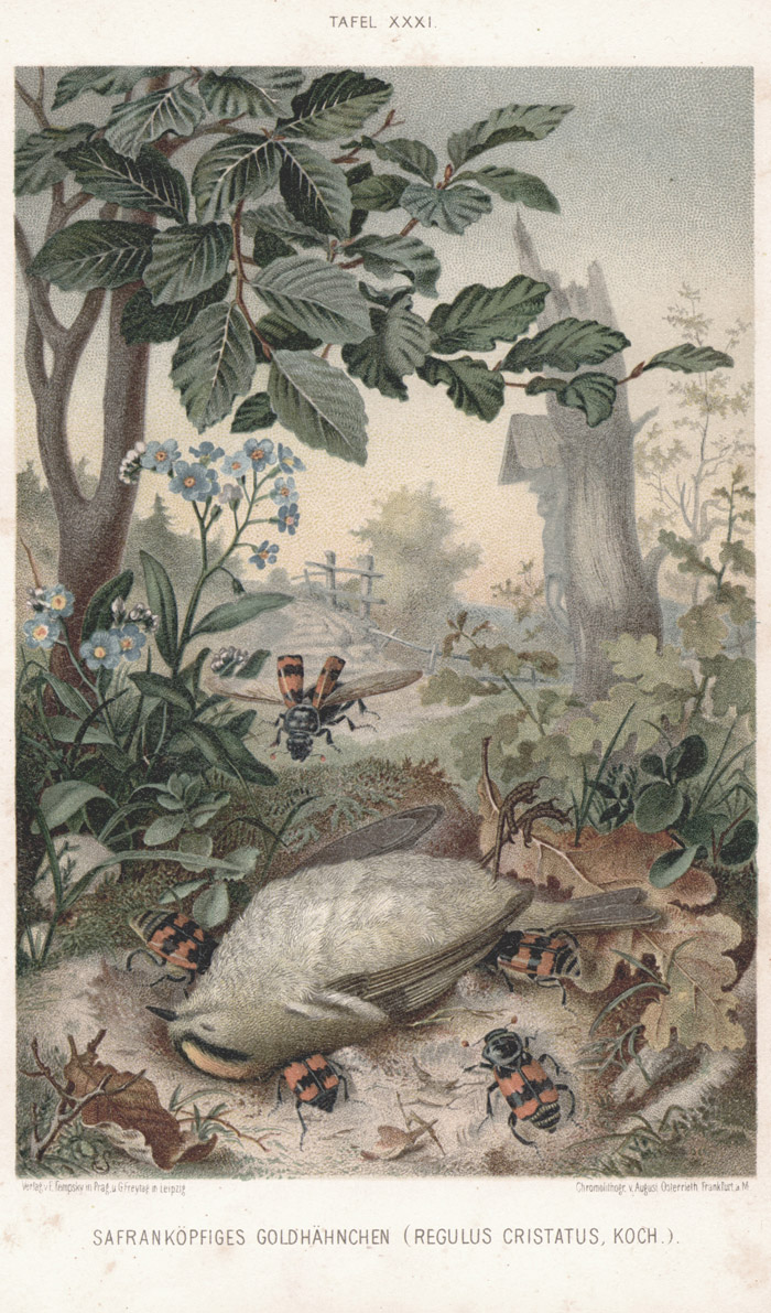 Zu den schönsten Erinnerungen aus meiner Jugendzeit her gehört die an einem milden Wintertag im dunkelgrünen Nadelholzwald, als zur Mittagszeit die Sonnenstralen die vom Schnee belasteten Kiefern umgoldeten und ich inmitten des Waldes zum erstenmal einen Schwarm Goldhähnchen vor mir sah. Wispernd und emsig geschäftig suchten die Vögelchen dicht vor mir Zweig um Zweig ab, so daß ich sie fast hätte mit den Händen ergreifen können. Alle ihre Schönheit und Lieblichkeit zeigten sie mir in nächster Nähe, ohne sich um mich zu bekümmern – und ich konnte es seitdem wol begreifen, daß beide Goldhähnchen, freilich nur für ganz besondere Liebhaber, auch als Stubenvögel einen außerordentlichen Reiz haben.