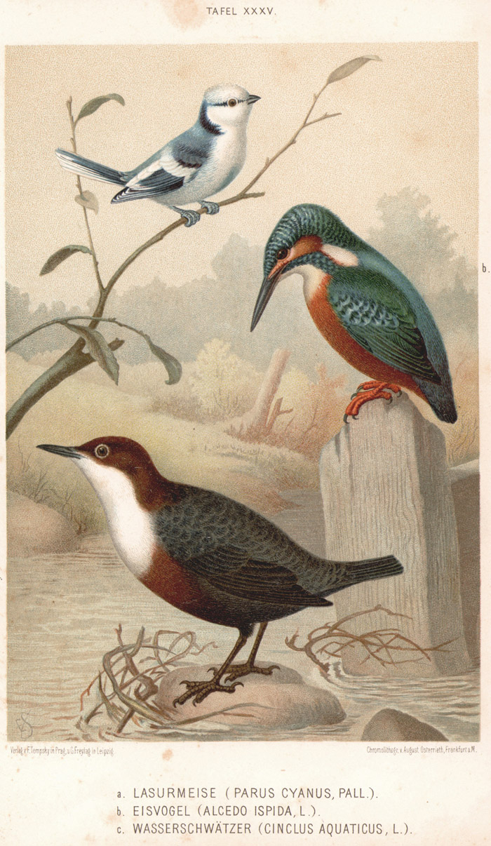 Bunte, schöne Farben sind es, die uns zuweilen auch unser nördlicher Winter malt. Treten wir aus dem dunkeln, mit schweren Schneemassen belasteten Walde heraus an das Ufer eines kleinen Landsees, so sehen wir an jener Stelle, wo ein reißender Bach, vom steilen Ufer herabstürzend, die Eisdecke, welche das weite Wasser sonst bedeckt, immer wieder zertrümmert und eine beträchtliche Fläche offen erhält, ein schönes Bild regsamen Vogellebens vor uns. Da plätschert hin und her laufend die Wasseramsel in ihrem schlichten Gefieder, da taucht plötzlich der Eisvogel in seinen glänzenden Farben hinab und wieder empor. Und dann beleben sich rings umher die Zweige, denn ein Meisenschwarm eilt zur Tränke herbei. Inmitten der beweglichen Gesellschaft fassen wir einen Wandergast in's Auge, den aus dem hohen Norden irgendein Zufall hierher geführt und der sich nun dem lustigen Getümmel seiner Verwandten angeschlossen hat.