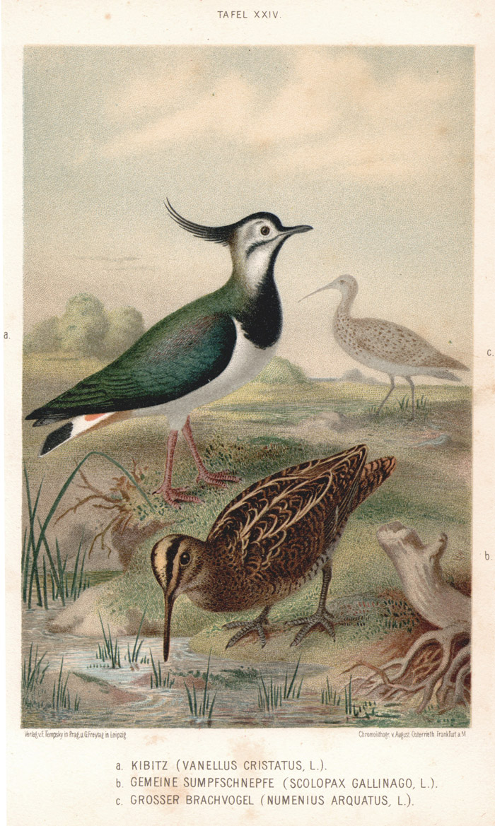 b. Gemeine Sumpfschnepfe (Scolopax gallinago, L.),