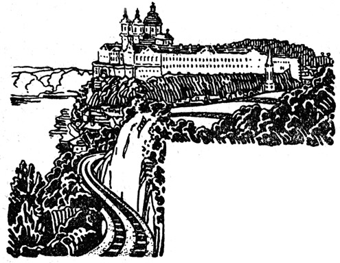 Im Widerglanz der Morgensonne, wie es Koja so oft gesehen hatte, flammten wieder die langen Fensterreihen des Stiftes, als der Zug an Melk vorbeifuhr. Da zog Agi ihr Taschentuch hervor und winkte hinüber, sie gedachte der Professoren Albert und Gabriel, die auch ans Gute im Wesen ihres Bruders glaubten. Und sie erneuerte in sich das Gelöbnis, diese schicksalschaffende Meinung wahr zu machen. Einen bedeutungsvollen Blick sandte sie zur Mutter hinüber, die, den Säugling an der Brust, unter Tränen zu ihr herüberlächelte. Der ihr gegenübersitzende Vater suchte ohne Rücksicht auf das Kind seinen Groll und seine Sorgen im Tabaksqualm seiner Holzpfeife zu ersticken. Der Zug fuhr in den Tunnel des Sandsteinberges vor Loosdorf ein; die schöne Heimat lag hinter der Familie. Lachend im Sonnenschein, der gelbleuchtend auf der Schneedecke der Hügel und Felder flimmerte, tauchte die Fremde vor ihnen auf. Vorüber an der Ruine Schallaburg und der vom Abhang des Dunkelsteiner Waldes herniedergrüßenden Osterburg, ging die Fahrt auf St. Pölten zu, wo Koja zur selben Stunde im Gymnasium saß. Wie friedvoll war die winterliche Welt, wie lieblich das hügelige Gelände, in dessen Bachtälern freundliche Ortschaften mit ihren roten Ziegeldächern eingebettet lagen. Überall kräuselten sich bläuliche Rauchsäulen empor, die, von keinem Windhauch gedrückt, erst in der Höhe der Zwiebeltürme Evangelische Gemeinden haben meist Kirchen mit Spitztürmen, in katholischen herrschen Zwiebeltürme vor. der Dorfkirchen zerstoben.