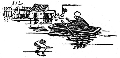 Mit der Vorsicht eines Einbaumschiffers handhabte der kaum dreizehnjährige Koja Koja, Kosename für Kajetan. die Lattenruder, um seinen Waschtrog am Umkippen zu verhindern, während er im lehmfarbigen Überschwemmungswasser den weitläufigen Hof überquerte, dessen alter Bretterzaun vom schweren Donauwasser vielfach umgebrochen und zertragen war. Er hielt auf den Holzschuppen zu, um das Geflügel zu füttern. Auf der Rückfahrt zum Prokophause fischte er allerlei Schwemmholz auf, steuerte sein schwankes Fahrzeug geschickt durch die offene Haustüre und band es am Stiegengeländer fest. – Er trug das nasse Holz auf den Dachboden und breitete es gegenüber der offenen Dachluke zum Trocknen auf. Aus einem Bretterverschlage, in dem die Ziegen ihren Notstall hatten, trat die Mutter des Knaben, den Milchzuber in der Hand. Das noch jugendliche Gesicht der hochgewachsenen Dreißigerin, in deren nußbraunem Haare an den Schläfen schon weiße Strähnchen schimmerten, wurde von einem Lächeln verschönt, während ein Blick ihrer graublauen Augen das Tun des Jungen lobte.