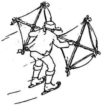 Für Kojas Segelschlittschuhlauf Näheres in »Kojas Waldläuferzeit«. wurde das Eis immer untauglicher. Es schmiegte sich an die Hügel des Bodens. Es schmolz. Mancher Schaden wurde sichtbar. Die Deckbretter des Hofbrunnens fehlten und auch die Bohlendecke der Senkgrube war weg. Im Wasser, das ein Meter tief unterm Grubenrande stand, schwamm eine »Rumpel«, und die gehörte der Frau Ratz. Das Wellblech im Holzrahmen des Waschgerätes übte auf Koja den Reiz einer Versuchung. – Es war eine Dummheit, eine kleine Dummheit, daß er dem Reiz nicht widerstand. wie sein Vater einst mit der langgestielten Fischgabel vom Erlafer Steg hinab die Fische aus dem Wasser gestochen hatte, so wollte Koja mit seiner eisenbeschlagenen Floßstange, die noch vom Robinsonspiel da war, die »Rumpel« heraufholen.