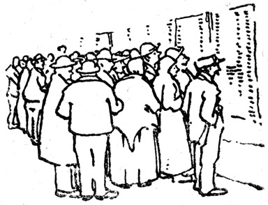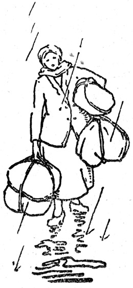 Es kamen schwere Tage für die Familie; die Suppen wurden immer dünner; sie stillten den Hunger nicht. – Der Vater war wenig zu Hause. Täglich ging der Vater aus, um Arbeit zu suchen. Er nahm sich als Wegzehrung zum Brote so viel Fleisch und Fett aus Agis Vorräten, daß diese beängstigend schwanden. Das letzte Schmalztöpfchen versteckte sie vor ihm, um doch etwas zum Suppenkochen zu haben.
