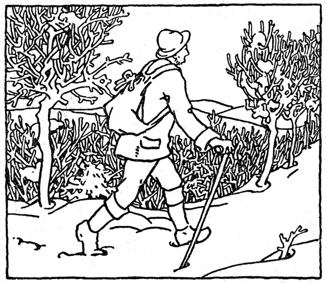 So wanderte er auch am ersten Weihnachtstag in den Wiener Wald. Auf dem gefrorenen Grunde lag nur spannhoch der Schnee; die Baumkronen an den Berghängen glitzerten im Rauhreif. Ziellos unbekannten Schönheiten entgegen marschierte der junge Lehrer durchs Wassergespreng südwärts. Der Nebel seines Hauches verdichtete sich an seinem Schnurrbart und hing sich in Eiszäpfchen daran, weithin scholl des Wanderers Lied Text von Wilhelm Müller, vertont von T. Decker. durch die winterliche Stille:
