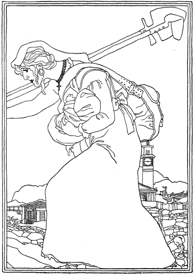 Der Ärmste wußte ihr nichts anderes zu sagen, und er hatte keinen anderen Gedanken und begriff nichts anderes vor Freude und Zufriedenheit darüber, daß Mara in seinem Hause schaltete und waltete und alles ordnete und zurechtmachte. Es fiel ihm sehr schwer, sich von da loszumachen und nach Salonia zu gehen, um die Schafe zu hüten, und wenn der Montag kam, da zögerte er, auf den Rücken des Esels die Hirtentasche, den Mantel und den Regenschirm aus Wachstuch aufzuladen.