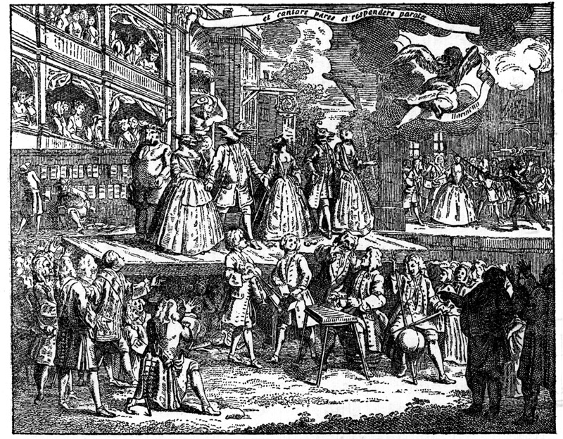 In England dagegen sind die Sänger »charmers of an idle age«. Die Politik scheint alles zu verschlingen. Die Kämpfe der Tories und der Whigs prägen der Zeit ihren Charakter auf. Eine echte Sinnlichkeit gibt es nicht. Die Phantasie ist lahm. Von der Musik als metaphysischer Kunst scheidet ein Abgrund. Aber Unterhaltungsbedürfnis, Snobismus, Sensationslust verbünden sich, um den Müßiggang so genußreich wie möglich zu machen. Für diese Gesellschaft scheint der italienische Sänger, nicht als Instrument der Leidenschaft, sondern des reinen Tones geradezu erfunden. Ihn nach England zu locken, das den ganzen Kontinent in der Entlohnung der Belcantisten überbietet, ist nicht schwer. Die Motive aber, die eine italienische Oper in London befürworten, empfahlen auch möglichst gehäufte und gepfefferte Bissen. Wie dort Whigs und Tories, so sollen sich auf der Bühne zwei kämpfende Primadonnen gegenüberstehen. Das muß nicht nur zur erregendsten Szene hier, sondern zu Parteiungen dort, also zu einer künstlerischen Spiegelung des politischen Kampfes führen. Das Geschwätz in den Cafés und Salons hat freie Bahn. Die Zeitung wird zur Wortführerin der Parteien. Dichter treten mit auf den Schauplatz. Die Karikatur arbeitet.