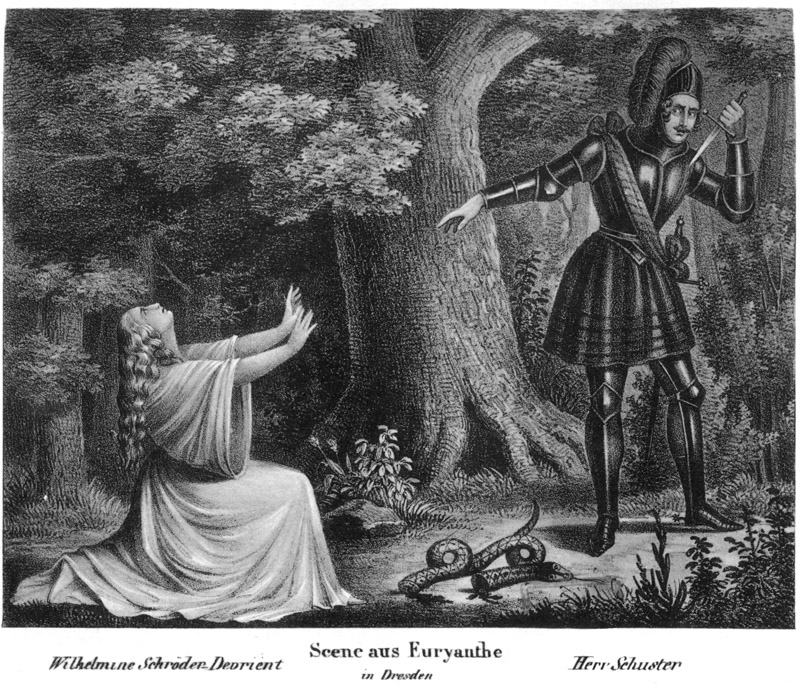 Szene aus Euryanthe in Dresden mit Wilhelmine Schröder-Devrient in der Titelrolle